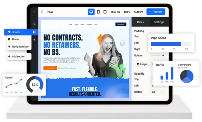 We use custom Squarespace templates with professional branding and design services to shape your site's look and feel. Our team fine-tunes layouts in the drag-and-drop builder, ensuring they are intuitive, consistent, and mobile-friendly across all devices.